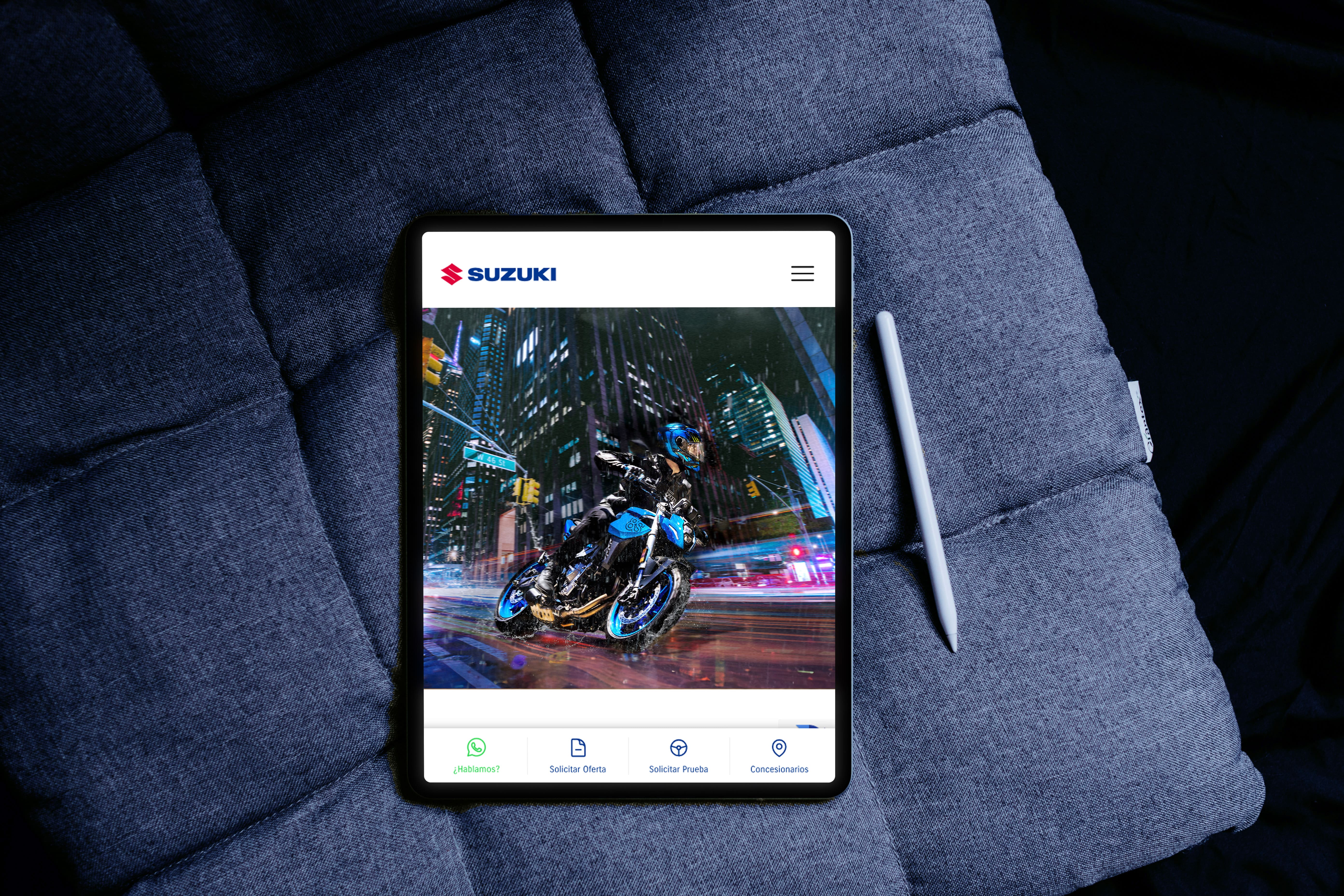 Diseño y conceptualización de banners innovadores para nuevos modelos de coches, participación en la generación de nuevas ideas, y creatividades para la web y landings desarrolladas para Suzuki Moto y Suzuki Ibérica.